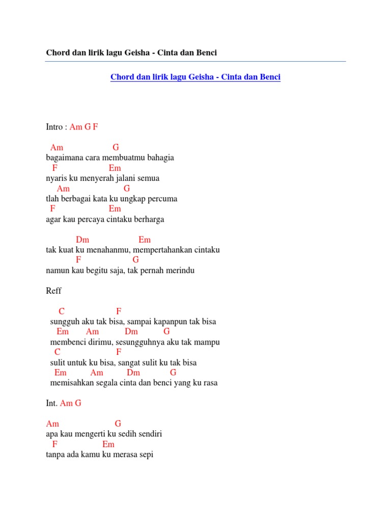 Chord Dan Lirik Lagu Geisha Cinta Dan Benci Pdf